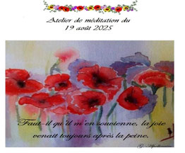 Cette citation «jolie n'est-ce pas» pour vous inviter à notre prochain atelier de méditation du 19 août 2025 à 18h30 comme habituellement.