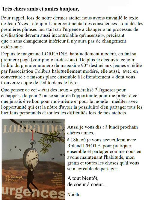 Atelier de méditation dinatoire du lundi 11 septembre 2023 à 18h.