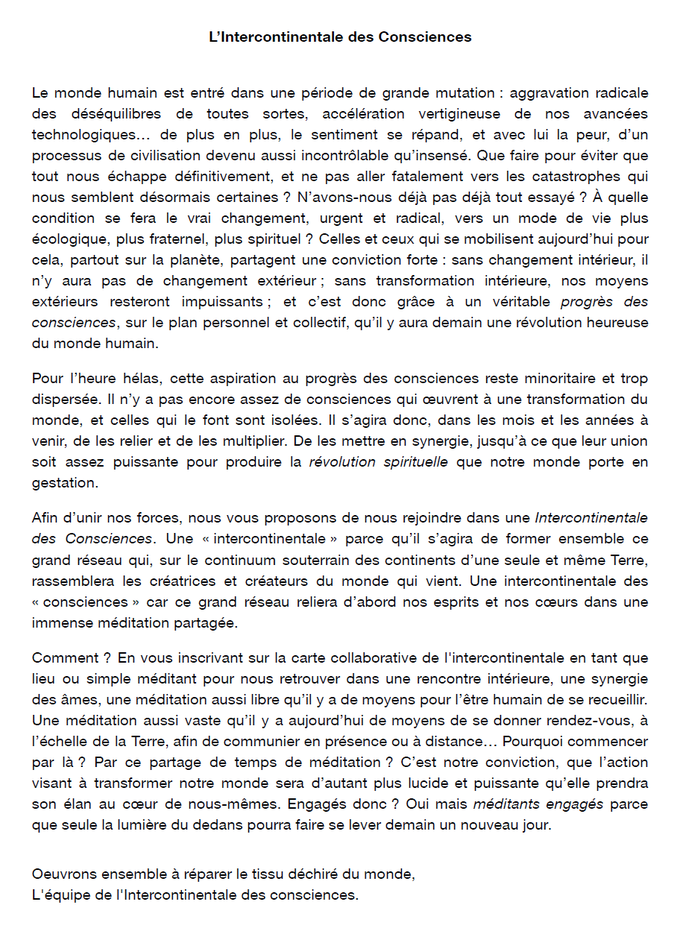 Y a-t-il une autre issue, en attendant d'être plus profondément conscient, assez intelligent pour nous aimer les uns les autres et célébrer ensemble dans une intercontinentale des consciences, le Réel un et infini ?